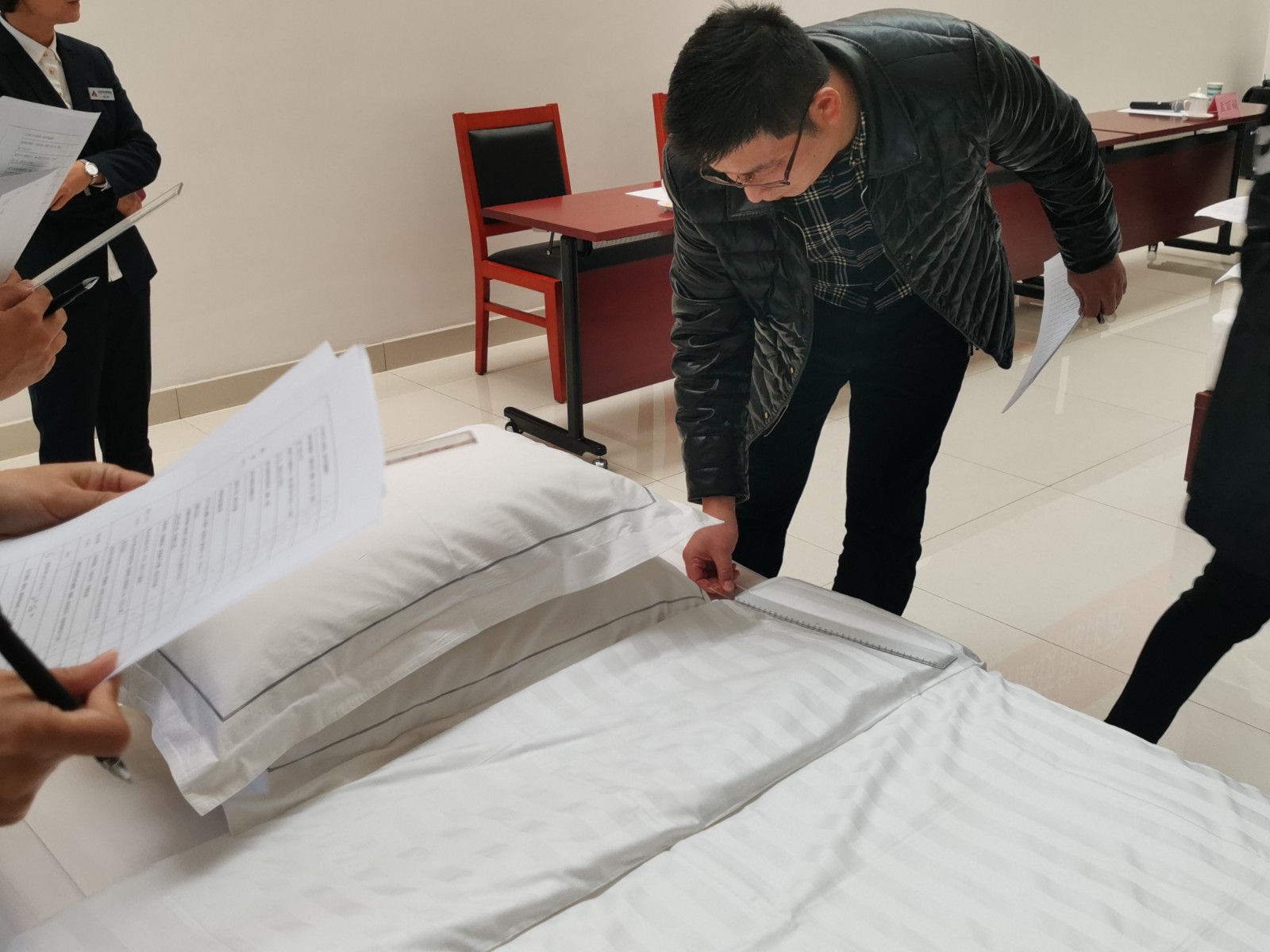 評委們認真的檢查記錄評分