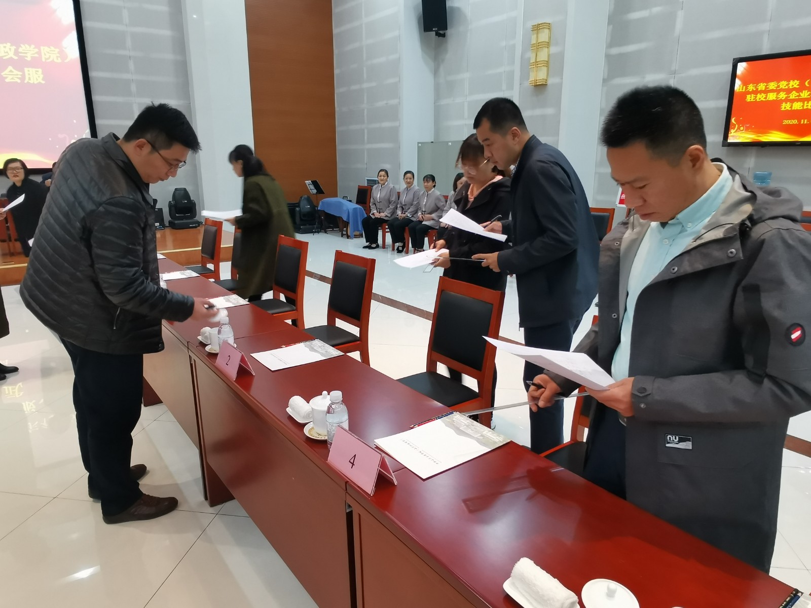 2020年11月4日上午,由山東省委黨校(山東行政學院)舉辦的駐校服務企業(yè)客服、會服技能比武在東校區(qū)舉行。經過參賽隊員激烈的角逐和專家認真的打分,我公司省委黨校東校區(qū)物業(yè)服務處在參加比賽的三家服務單位中榮獲會服技能比賽第一名、第二名,客服技能比賽第二名、第三名的好成績。在此,公司對他們取得的成績表示祝賀,對他們的努力付出表示感謝!